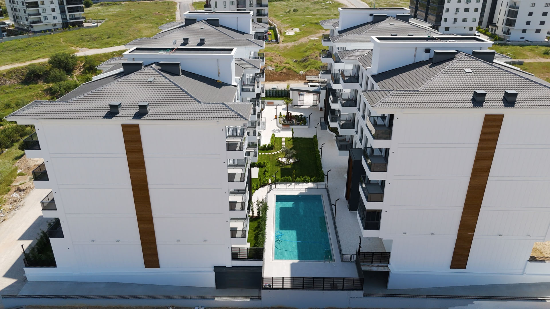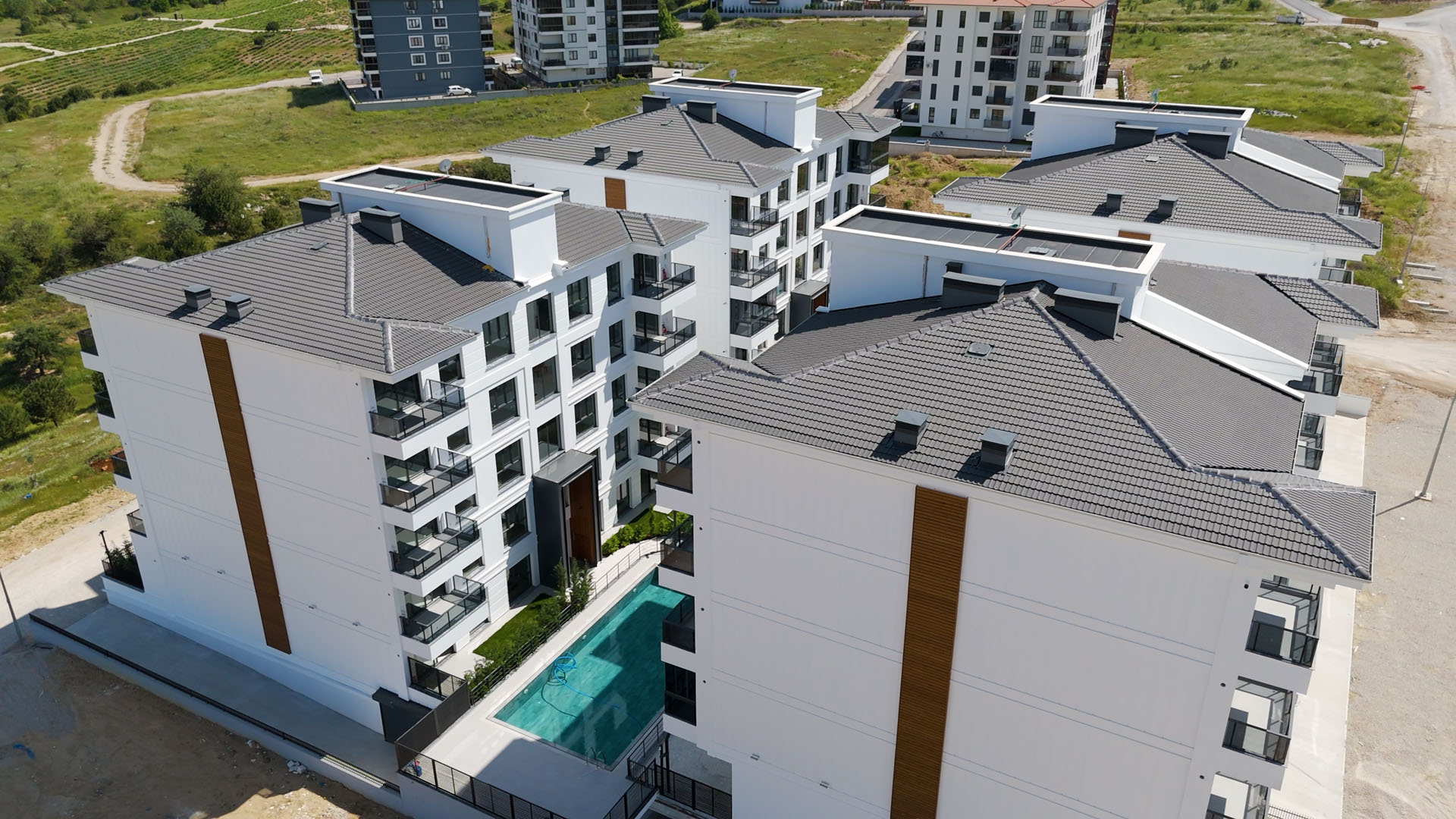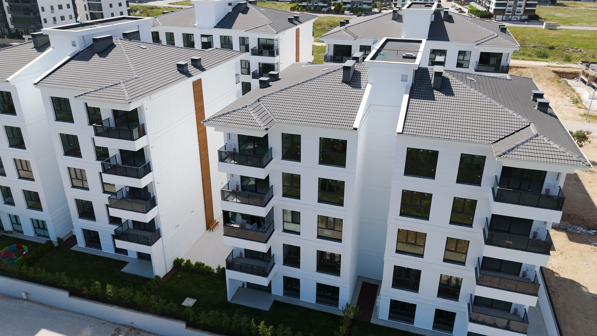 Çatılarda su, ses ve ısı izolasyonu yapılacak ve çelik çatı sistemi üzerine Beton Kiremit uygulanacaktır.